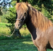 Godi ist ein feiner Fuchsfalbschecke mit viel Raumgriff und schönen Grundgangarten. Sein Tölt zeigt vielversprechende Bewegungen – ideal auch für Reiter mit Turnierambitionen. Mit feinem